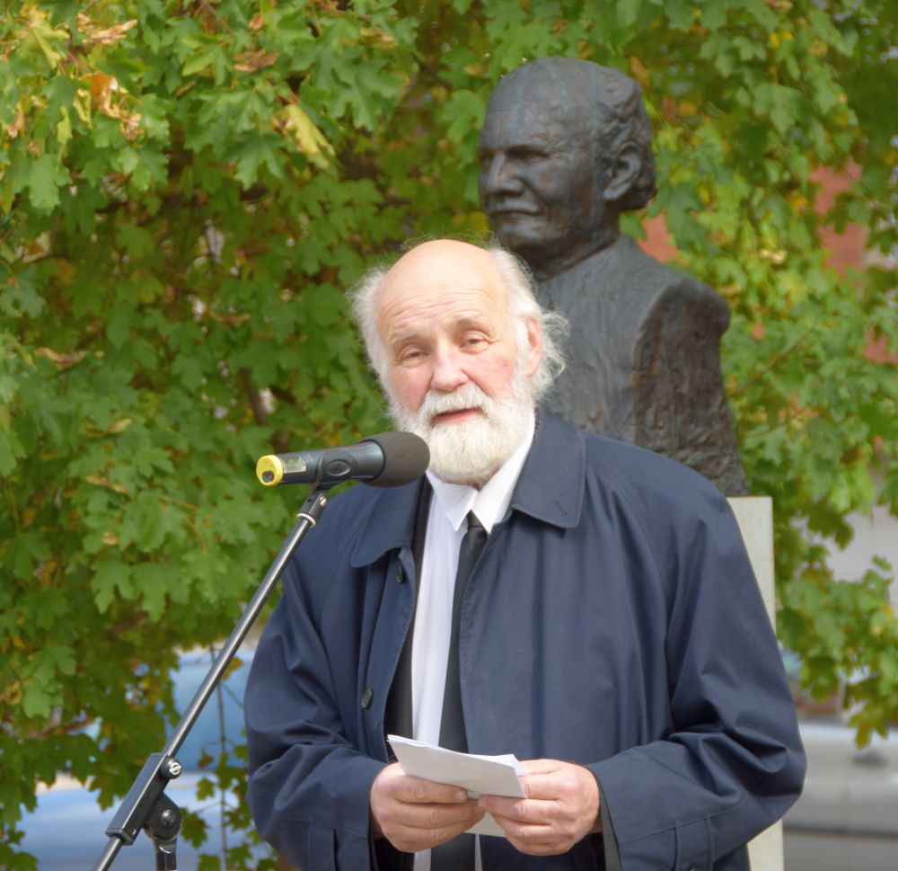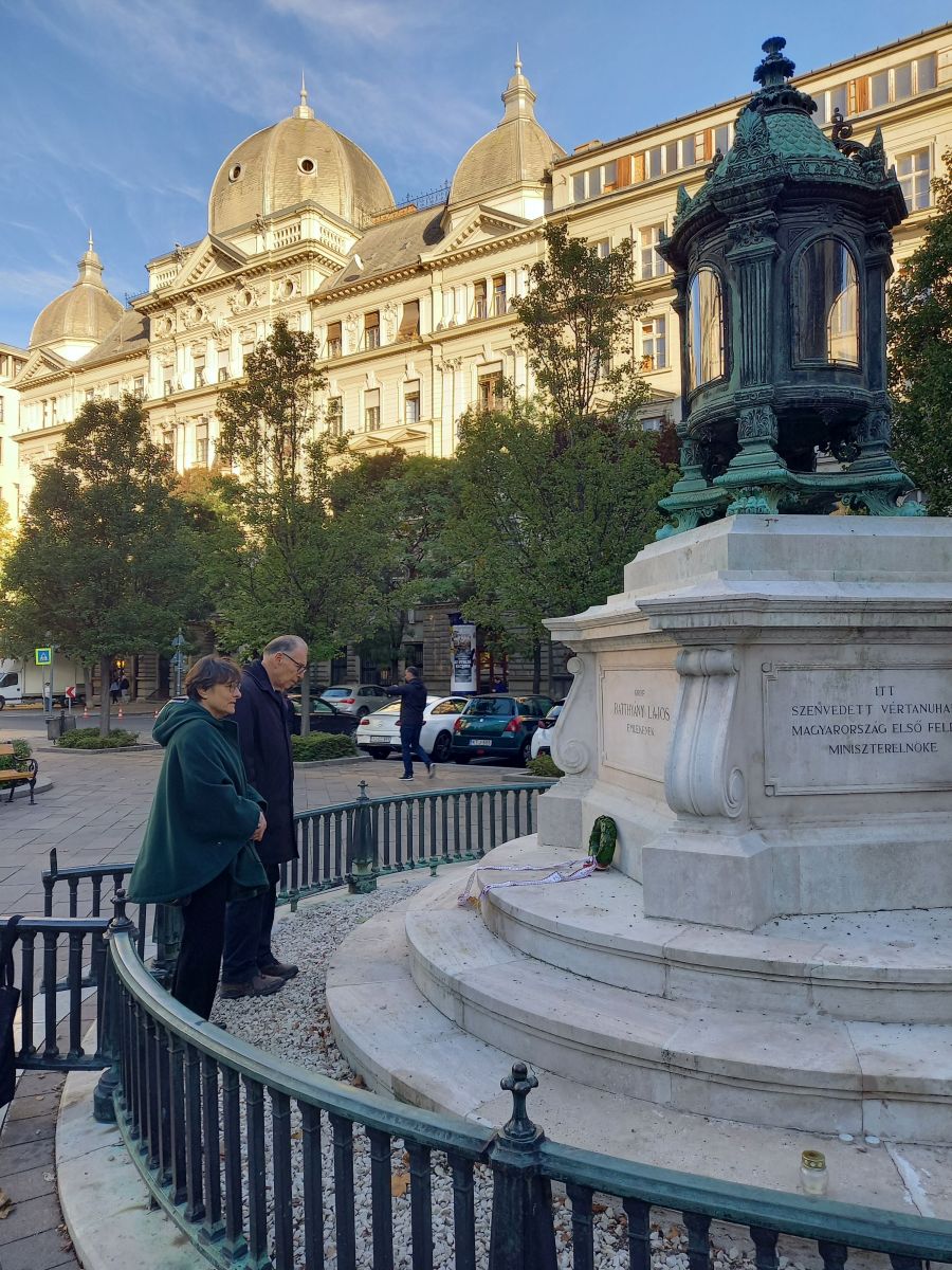 Koszorúzás a XIII. kerületben, a Göncz Árpád szobornál. Alapítványunk részéről Gulyás András, a kuratórium elnöke, a család részéről Göncz Annamária koszorúzott.