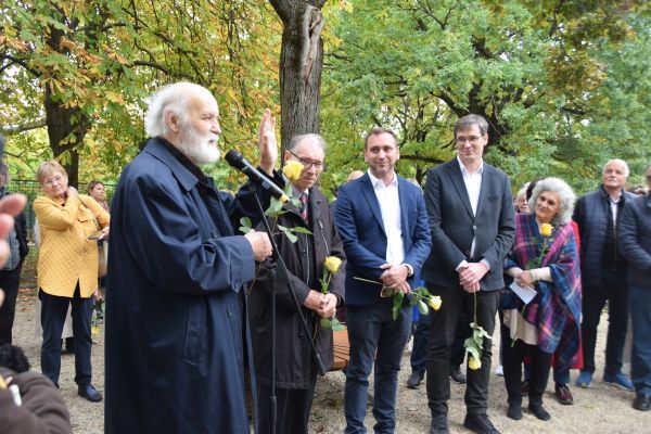 Ezt követően a Göncz Árpád és Zsuzsa emlékpadnál a résztvevők Iványi Gábor áldásával egy-egy szál rózsával rótták le kegyeletüket.