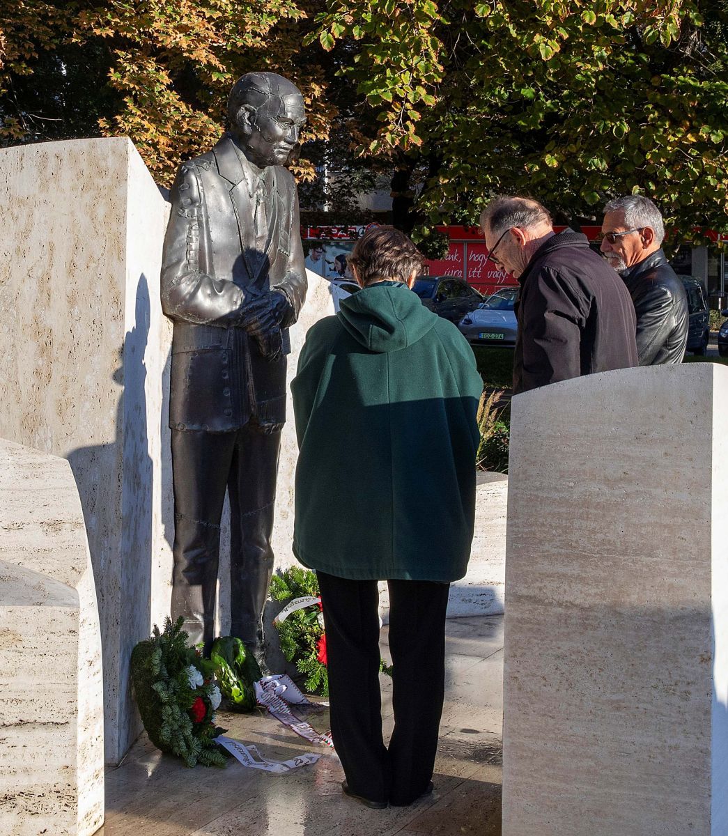 Koszorúzás a XIII. kerületben, a Göncz Árpád szobornál